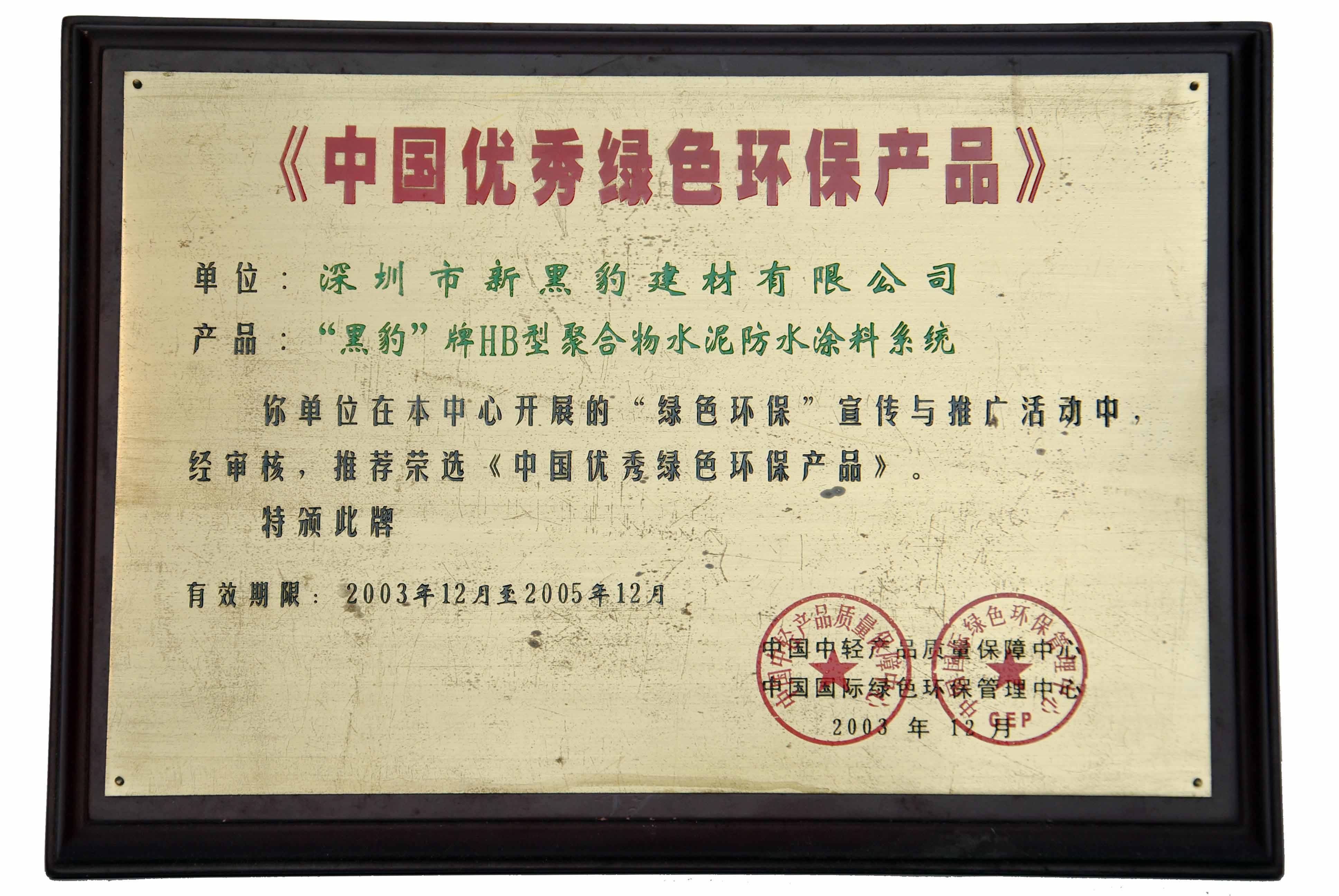 我公司產(chǎn)品2003年12月獲得《中國優(yōu)秀綠色環(huán)保產(chǎn)品》榮譽(yù)證書