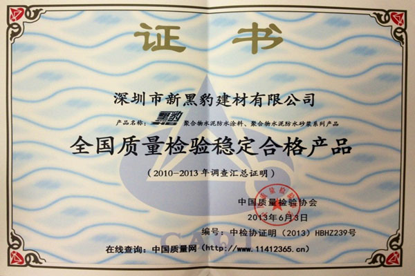 《全國(guó)質(zhì)量檢驗(yàn)穩(wěn)定合格產(chǎn)品》證書(shū)