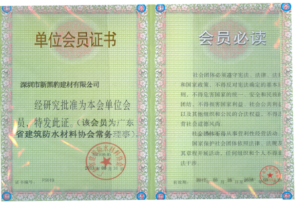 廣東省建筑防水材料協(xié)會常務(wù)理事單位