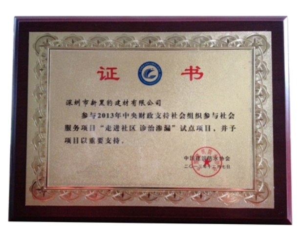 我公司積極組織參與“走進社區(qū) 診治滲漏”試點項目證書