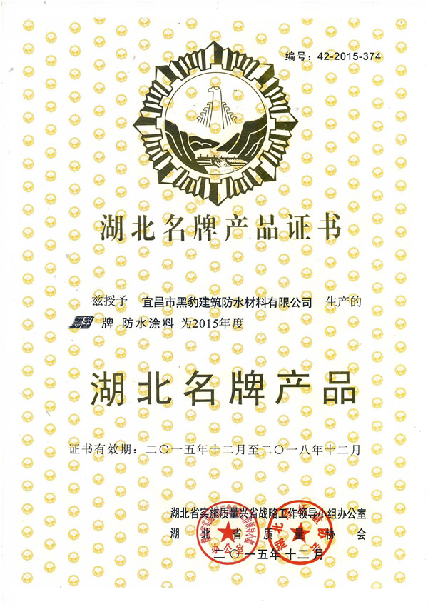2015年度湖北省名牌產(chǎn)品