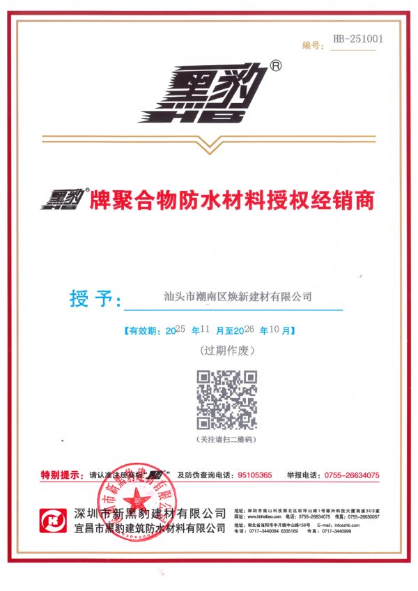授權(quán)經(jīng)銷商--北海市海城區(qū)福廈防水材料經(jīng)營部