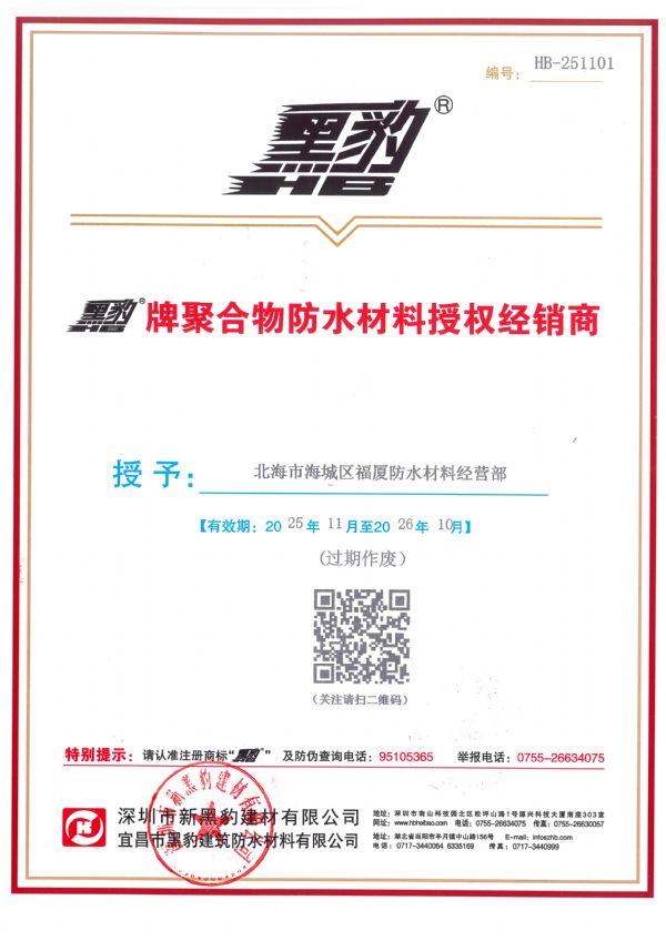 授權(quán)經(jīng)銷商--北海市海城區(qū)福廈防水材料經(jīng)營(yíng)部