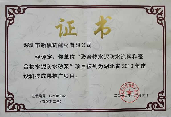 我公司聚合物水泥防水涂料和聚合物水泥防水砂漿被評(píng)為湖北省建設(shè)科技成果推廣項(xiàng)目。