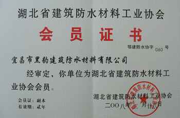 2008年3月28日,我公司宜昌分公司被認(rèn)定為“湖北省建筑防水材料工業(yè)協(xié)會(huì)”會(huì)員單位,我公司同時(shí)還是“中國(guó)建筑學(xué)會(huì)防水技術(shù)專業(yè)委員會(huì)”會(huì)員單位。