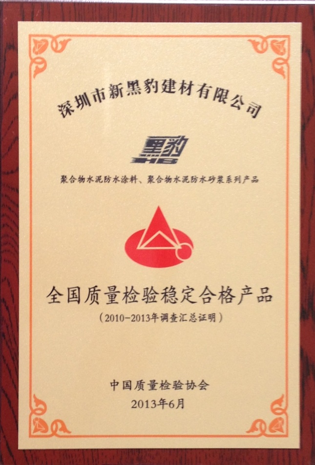 熱烈慶賀我深圳市新黑豹建材有限公司所生產(chǎn)的“黑豹”牌系列產(chǎn)品被評為全國質(zhì)量檢驗穩(wěn)定合格產(chǎn)品,并獲得了“全國質(zhì)量檢驗穩(wěn)定合格產(chǎn)品”的證書,此調(diào)查匯總和專題宣傳活動是由中國質(zhì)量檢驗協(xié)會組織開展的“全國質(zhì)量檢驗穩(wěn)定合格產(chǎn)品”,并由中國質(zhì)量檢驗協(xié)會根據(jù)調(diào)查匯總和審核評出的結(jié)果。另外,我公司也收到由中國質(zhì)量檢驗協(xié)會贈送的“全國質(zhì)量檢驗穩(wěn)定合格產(chǎn)品”的專業(yè)防偽標(biāo)識,此標(biāo)識可貼在包裝桶上面,消費(fèi)者可通過電話或者短信進(jìn)行防偽查詢。(此防偽標(biāo)識暫未啟用,若啟用,我公司將另行通知)