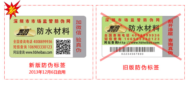 為了更好的幫助客戶辨別我公司生產(chǎn)的聚合物水泥防水涂料及其它防水材料,我公司即日起將啟用新版的防偽查詢標(biāo)簽。新版防偽標(biāo)簽在保持原用功能不變的基礎(chǔ)上增加了二維碼防偽查詢功能。在每個防偽標(biāo)簽上都印有二維碼,您可以使用微信的“掃一掃”功能描掃二維碼添加我公司的微信公眾平臺(hbheibao),并將此二維碼拍照傳送至我公司的微信公眾平臺(hbheibao),我公司將有專人為您辨別真?zhèn)?。我公司原有的防偽查詢電?008899936,短信查詢號碼:106903330123和網(wǎng)站查詢網(wǎng)址m.sustech1.cn的查詢方法及方式都保持不變。