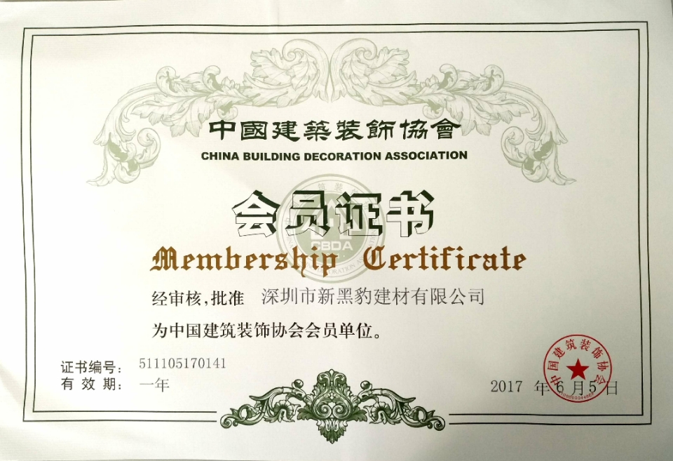 2017年6月5日,經(jīng)我公司提出申請,由中國建筑裝飾協(xié)會委派專業(yè)的審核員對我公司進行審核,批準我公司為中國建筑裝飾協(xié)會會員單位。